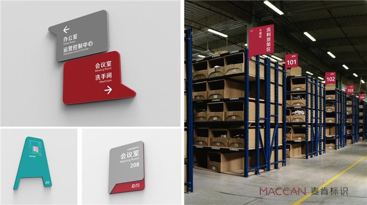 “亞洲一號”是京東將自動化運營中心打造成亞洲范圍內B2C行業內建筑規模最大、自動化程度最高的現代化運營中心的一個項目。麥肯應邀打造的 “亞洲一號” 京東物流園標識導視系統,首先為物流園區場地內的所有區域做了一個整體規劃布點,集倉儲、分揀、備件、售后、 宿舍、餐廳等功能區域指引,根據業務需要和流設備投入差異,可以將其分為三種類型:高度自動化項目、適度自動化項目、普通園區。