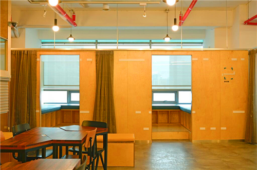 整套系統的色調清新明快,極大程度地提高了青年們的工作熱情與工作積極性,與傳統的壓抑的寫字樓氣氛相比,這里的更加適合青年人工作的開展,更有利于思維的發散。