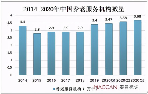 2019年中國(guó)養(yǎng)老服務(wù)機(jī)構(gòu)數(shù)量為3.4萬個(gè),2020年一季度養(yǎng)老服務(wù)機(jī)構(gòu)數(shù)量為3.47萬個(gè),2020年二季度養(yǎng)老服務(wù)機(jī)構(gòu)數(shù)量為3.58萬個(gè),2020年三季度養(yǎng)老服務(wù)機(jī)構(gòu)數(shù)量為3.68萬個(gè)。