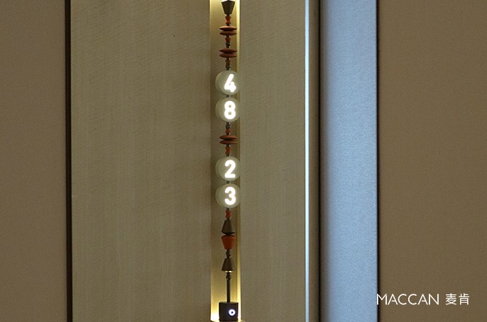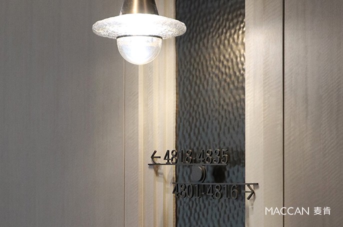公區(qū)標(biāo)識(shí)選取淺棕、深灰、古銅色為主色調(diào),三種色彩既呼應(yīng)廣府文化的沉穩(wěn)底蘊(yùn),又與酒店 “云端漫游” 的輕奢質(zhì)感相得益彰。房間門(mén)牌號(hào)標(biāo)識(shí)尤為亮眼,采用4種樣式,不同樓層的門(mén)牌既延續(xù)整體創(chuàng)意邏輯,又融入細(xì)微視覺(jué)變化, “類(lèi)似積木堆疊” 的創(chuàng)意鑲嵌進(jìn)轉(zhuǎn)角區(qū)域,讓門(mén)牌號(hào)不再是單純的數(shù)字符號(hào),更成為客房區(qū)域的藝術(shù)風(fēng)景,讓住客 “每一次抵達(dá)都有新鮮感”。